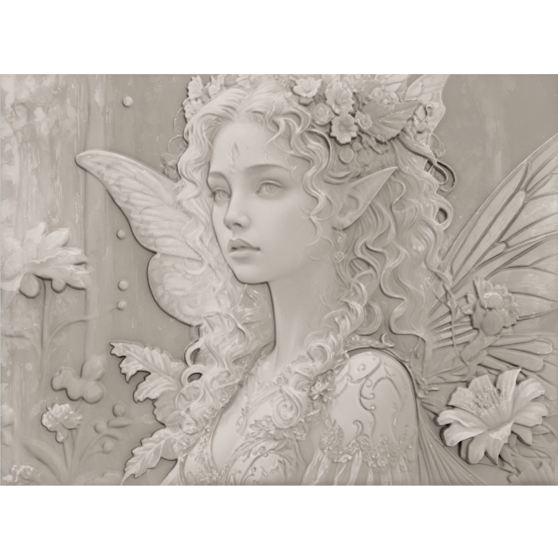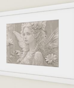 Her wings glow soft like moonlight on moss, delicate as spring rain.