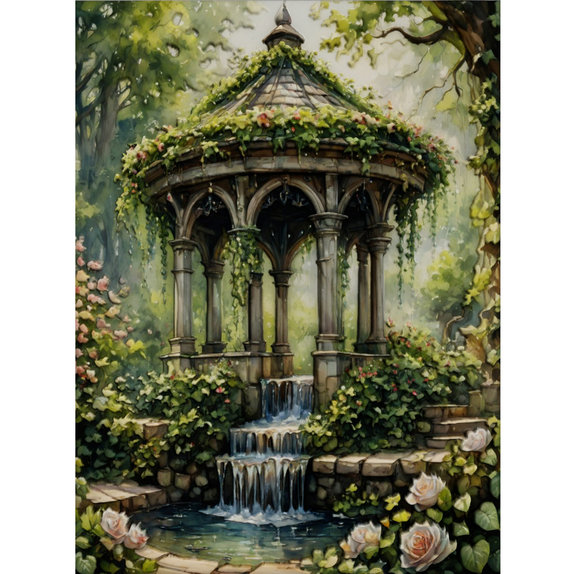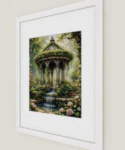 The water spills over mossy stones, singing a soft, secret song.