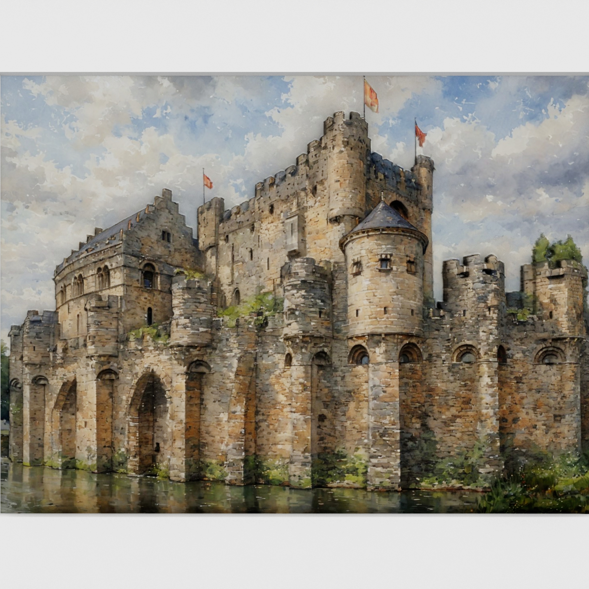 Gravensteen rises from the heart of Ghent, a fortress of stone and shadow etched with medieval pride. Its towers once echoed with the clang of armor and the judgments of counts. Surrounded by moats and mystery, it looms like a chapter torn from a darker tale. Cold walls guard echoes of torture chambers, council rooms, and whispered intrigue. From the battlements, rooftops and spires stretch beyond, the city blending past with present. Inside, steel and silence tell stories too fierce for words alone. Yet even in its grimness, there’s beauty—a strength shaped by centuries. Tourists wander its halls, drawn to the chill of history’s breath. Gravensteen stands not in ruin, but in memory—unyielding and alive. Image by Michielverbeek, cc by-sa 4.0.