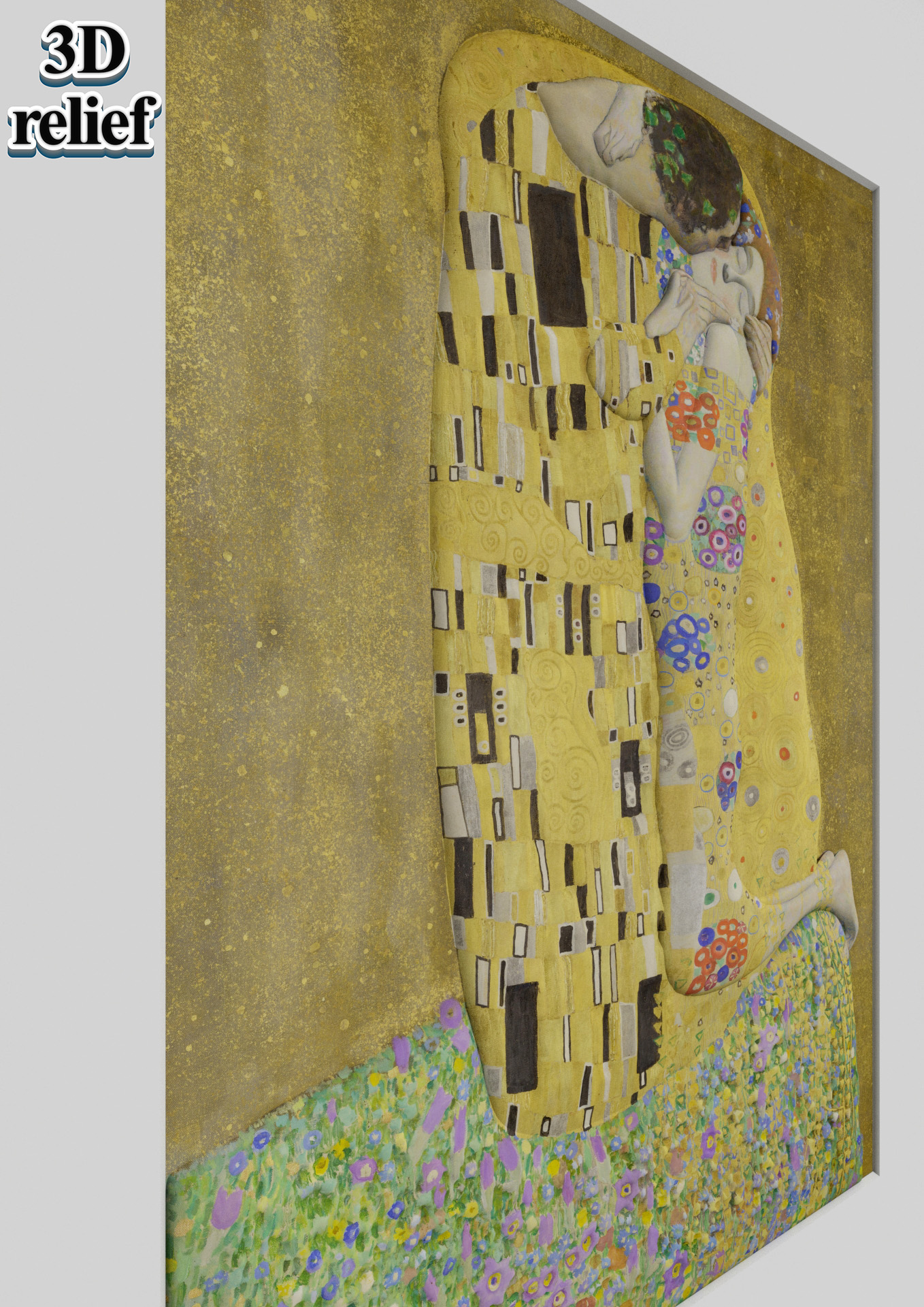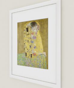 The Kiss by Gustav Klimt, painted between 1907 and 1908, is one of the most iconic works of the early 20th century. It depicts a couple locked in a tender embrace, wrapped in golden, patterned robes that merge their bodies into a single form. The background shimmers with gold leaf, creating a dreamlike, almost sacred atmosphere. The man gently cradles the woman’s face as he kisses her cheek, while she closes her eyes in peaceful surrender. Klimt’s use of intricate patterns, flowing lines, and rich textures reflects his unique Art Nouveau style. The contrast between the geometric shapes on the man’s robe and the floral motifs on the woman’s adds symbolic depth. Their placement on a bed of flowers emphasizes sensuality and connection to nature. The painting celebrates love, intimacy, and the beauty of human connection. Today, The Kiss remains a timeless symbol of romantic and artistic passion.