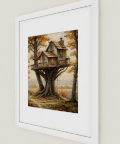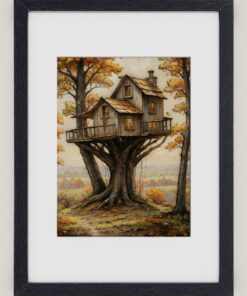 Perched high among the branches, the little treehouse sways gently in the wind.