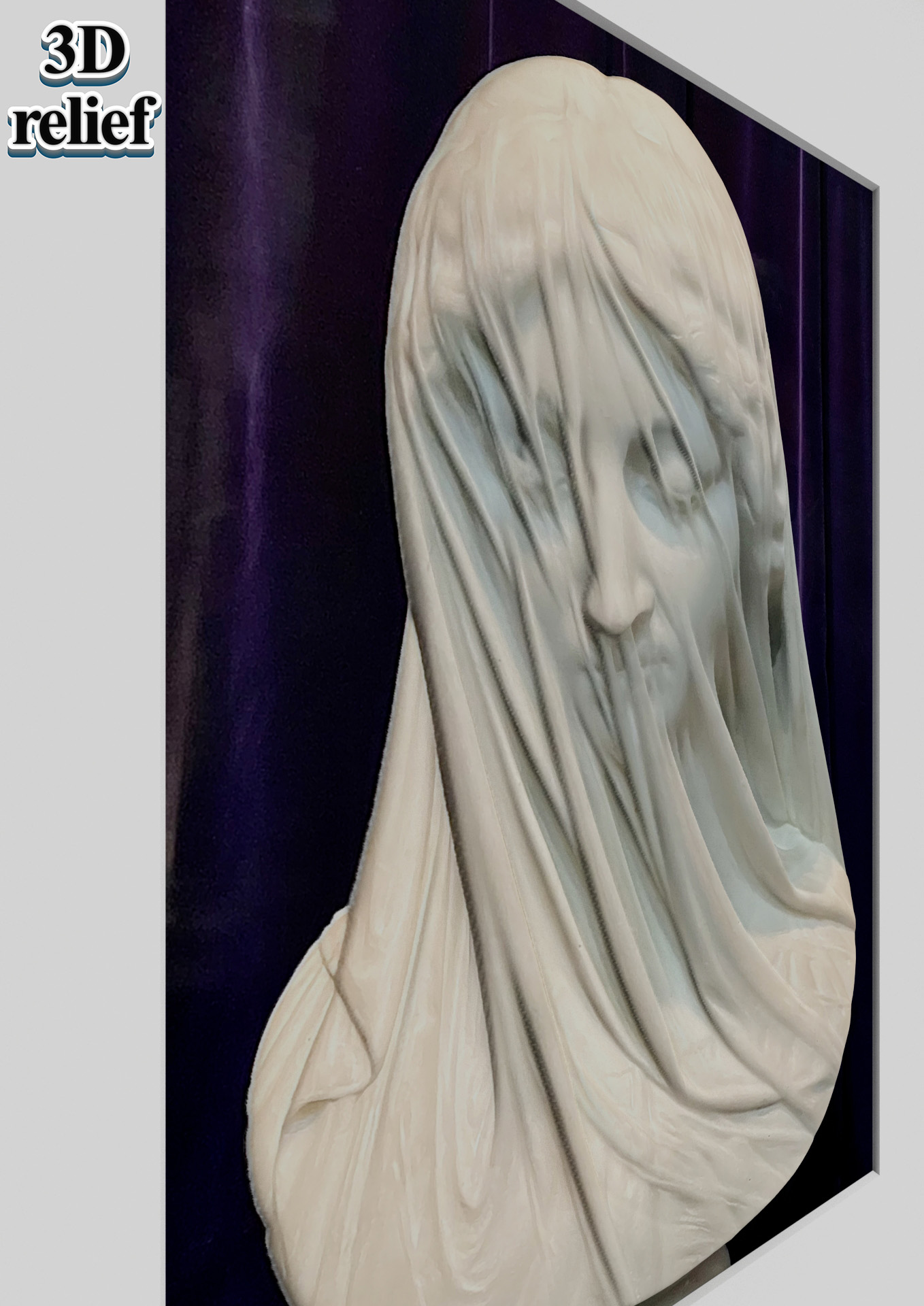 Veiled Virgin by StrazzaThe Veiled Virgin by Giovanni Strazza is a stunning marble sculpture that captures the illusion of a delicate veil draped over the face of the Virgin Mary. Carved in the mid-19th century, the work showcases extraordinary craftsmanship, as the thin veil appears almost translucent, revealing the serene features beneath. Strazza’s mastery lies in making solid marble seem soft and weightless, blurring the line between stone and fabric. The Virgin’s peaceful expression radiates purity, grace, and quiet devotion. Light dances across the folds, enhancing the lifelike texture and spiritual presence. The sculpture is both a technical marvel and a deeply moving religious icon. The veil symbolizes modesty and mystery, inviting contemplation of the divine. Despite its stillness, the piece feels alive, breathing reverence and awe. The Veiled Virgin remains a timeless testament to artistic skill and the sacred beauty of faith. Image by Shhewitt, cc by-sa 4.0.
